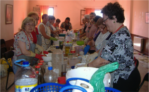 Los cursos han consistido en el reciclaje de aceites usados y su transformación en distintos tipos de jabones: de base, de lavadora, de naranja, con azulete, sales de baño, jabones de leche de cabra, de chocolate, café, de huevo, etc…. han trabajado en la elaboración del jabón en frío, de forma artesanal, que a diferencia del jabón cocido, conserva toda la glicerina natural, que le aporta propiedades nutritivas para la piel y ayuda a producir una espuma suave y agradable para la piel. La mayoría de los jabones y detergentes que encontramos en el mercado son sintéticos y están elaborados con ingredientes derivados del petróleo, con aromas químicos y colorantes, fabricados a partir de metales pesados. Elaborando artesanalmente estos jabones, reducimos los gastos familiares y contribuimos a la conservación del medio ambiente.